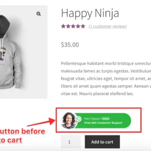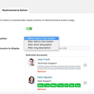 The widget can be appeared on all pages or only desired pages you set. Besides, you can also enable WhatsApp button under WooCommerce Add to cart button.